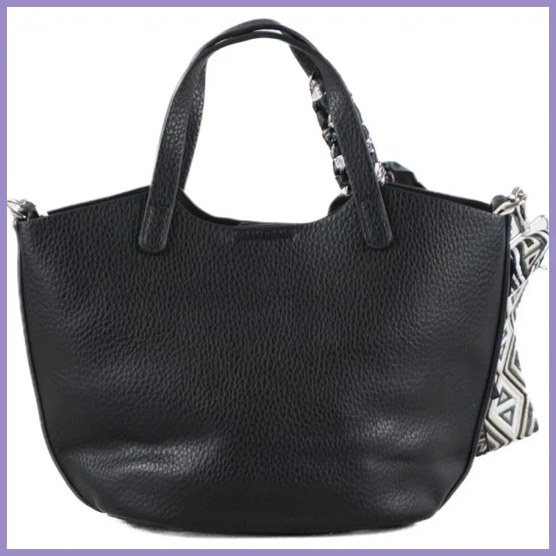 Csinos női kézitáska szalaggal, műbőr, fekete