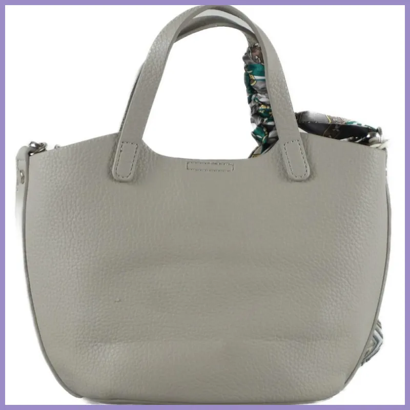 Csinos női kézitáska szalaggal, műbőr, szürke