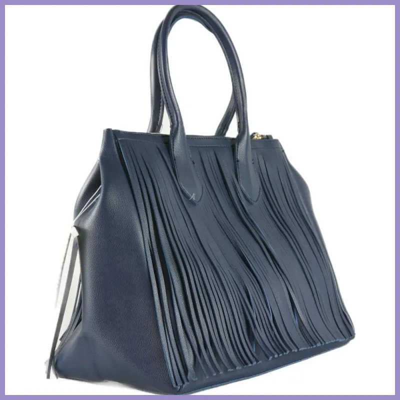 Nagyméretű rojtos kézitáska, műbőr, kék