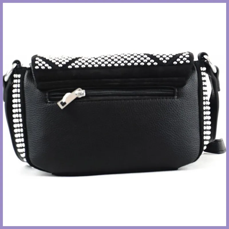 Női kisméretű keresztpántos táska strasszokkal, műbőr, fekete
