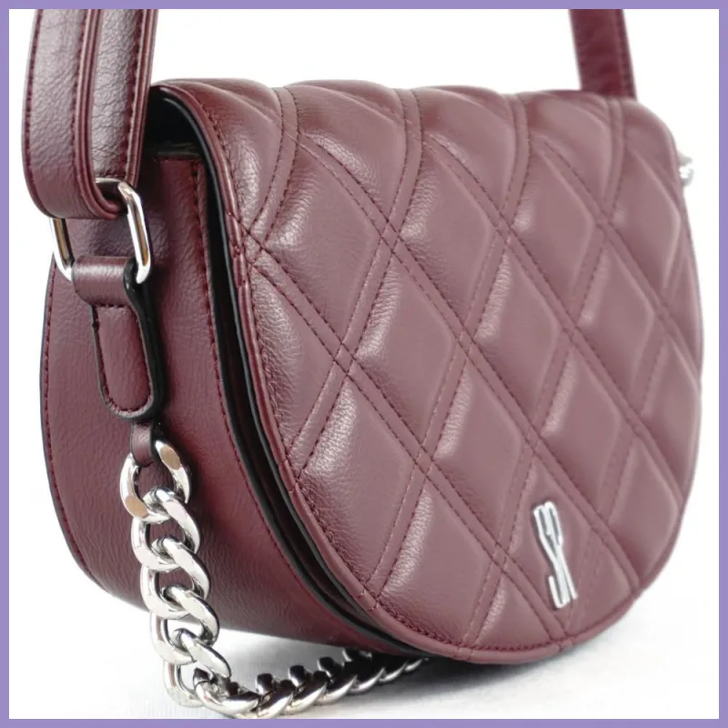 Silvia Rosa láncos női keresztpántos táska, puha steppelt, műbőr, bordó