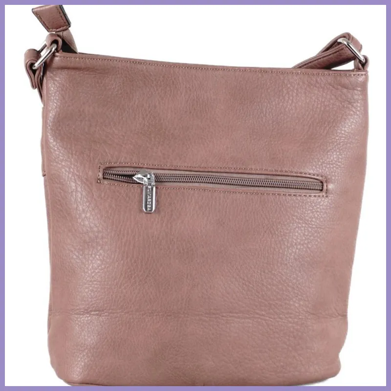 Silvia Rosa női válltáska elöl dupla zsebbel, műbőr, világosbarna