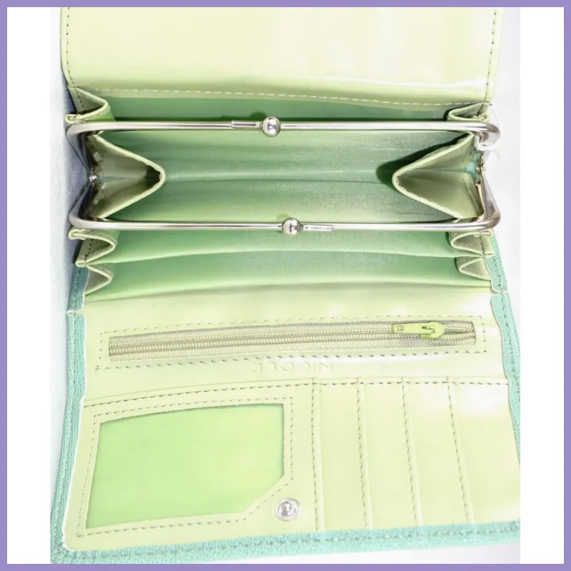 Egyszínű patentos női pénztárca, műbőr. Patenttal nyílik, alatta patentos széles rekesz és csatos aprótartó. Ezenkívül 5 széles rekesz, 1 cipzáras zseb és 4 bankkártyatartó. Méretei: 15×9×3 cm.