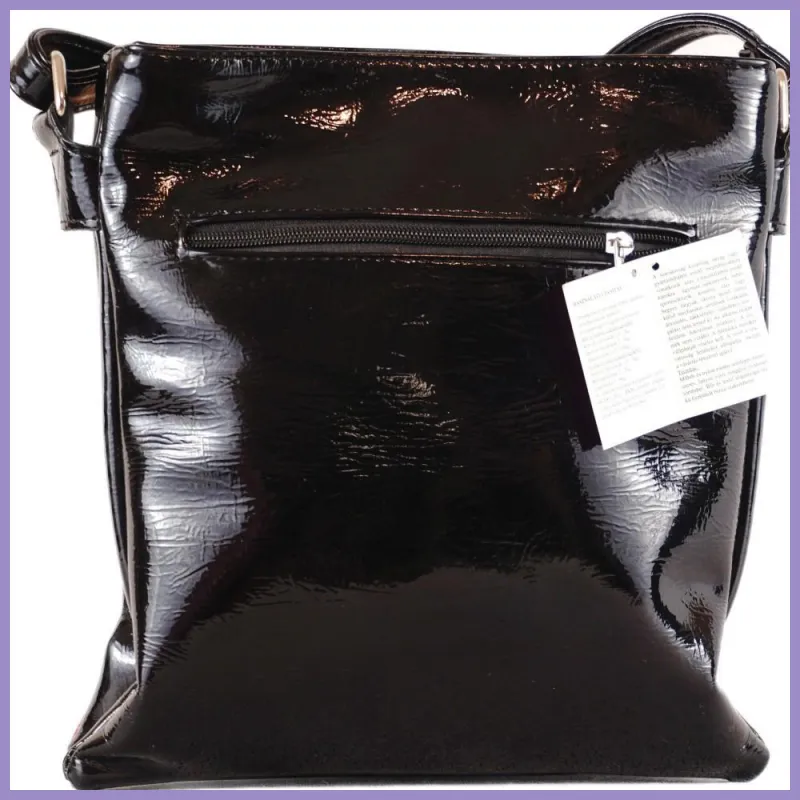 VIA55 dupla rekeszes női keresztpántos táska rostbőrből. Hátulján cipzáras zsebe van. A két – azonos méretű – rekesze cipzáros, egyiben 2 benyúlós, másikban 1 cipzáras zseb. Méretei: 25×28×6 cm