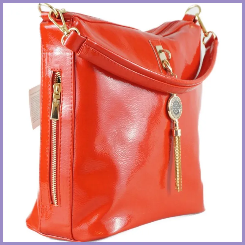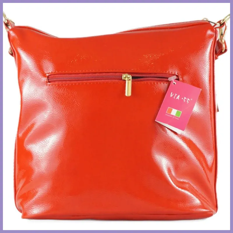 VIA55 egyszerű női válltáska, rostbőr, piros