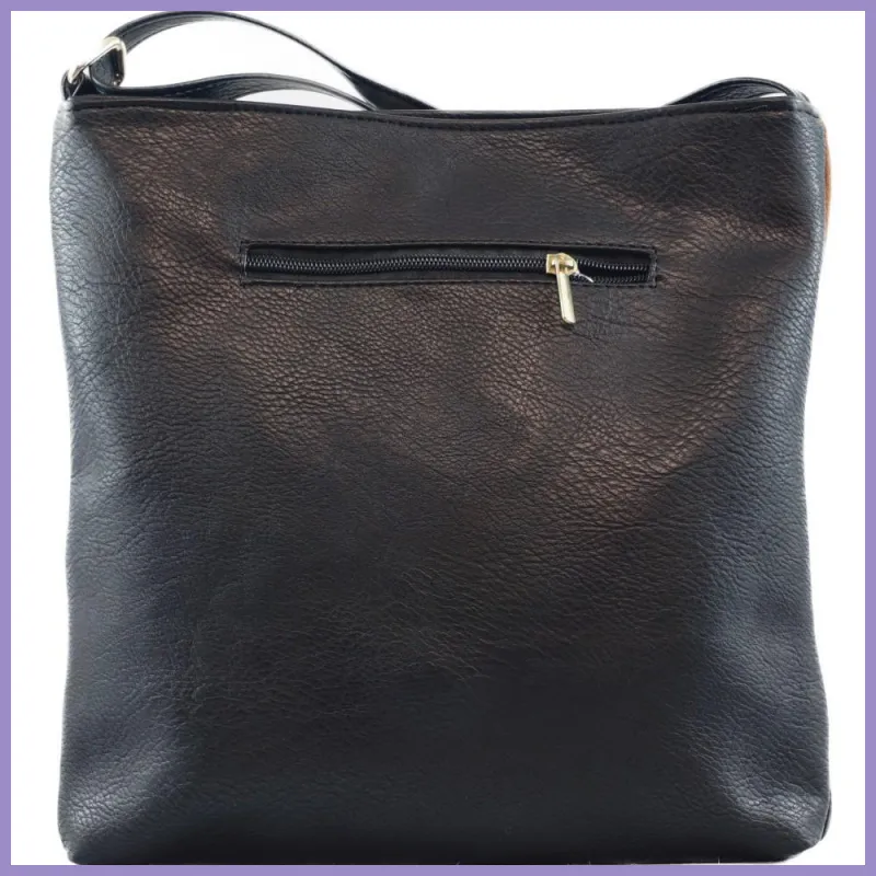 VIA55 elegáns női keresztpántos táska alul 2 sávval, rostbőr, barna színben. Hátulján cipzáras zsebe van. Tetején cipzárral záródik, belül 2 benyúlós és 1 cipzáras zseb. Méretei: 28×31×5 cm.