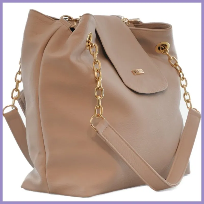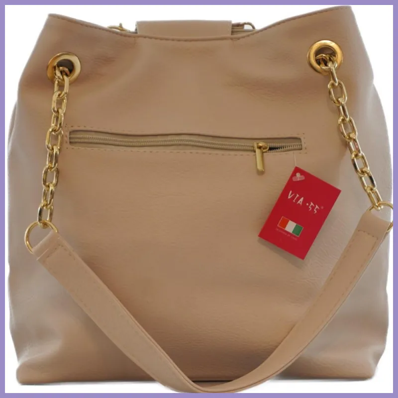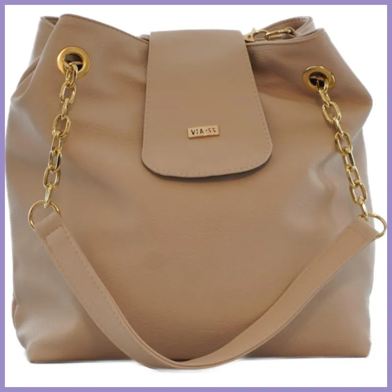 VIA55 nagyméretű női válltáska patentos fedéllel, rostbőr, bézs