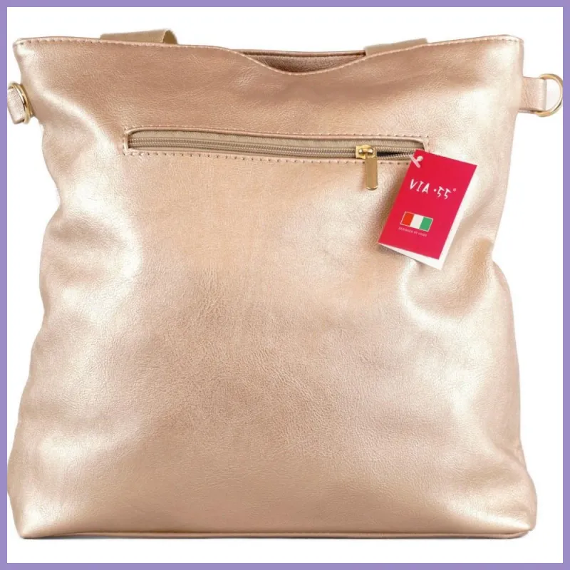 VIA55 női karikás válltáska, rostbőr, arany