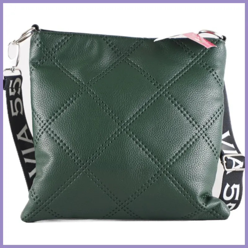 VIA55 női keresztpántos táska mágneses zsebekkel, rostbőr, zöld