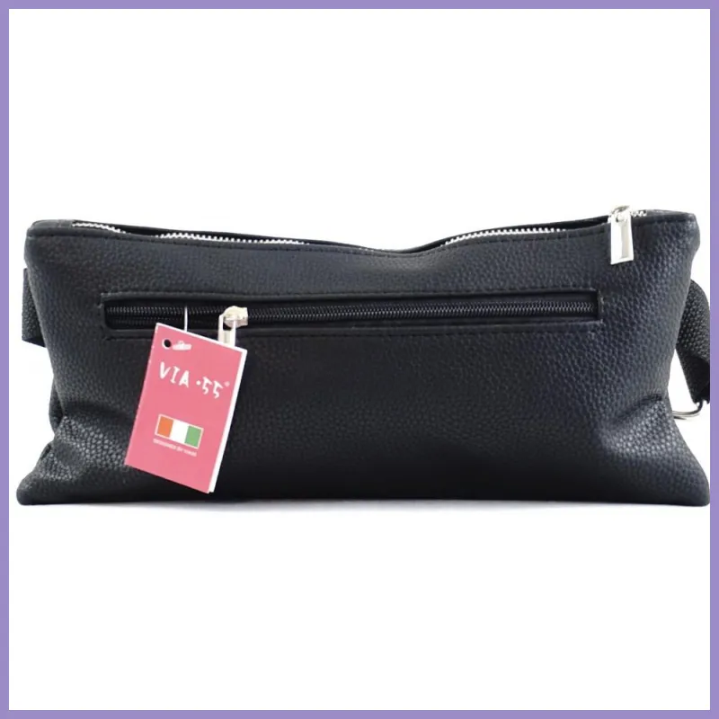 VIA55 női keresztpántos táska széles fazonban, rostbőr, vörös színben. Elején és hátulján széles cipzáras zseb. Tetején cipzárral záródik, belül 1 cipzáras zseb. Méretei: 29×13×4 cm.