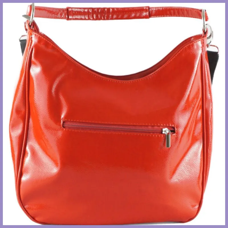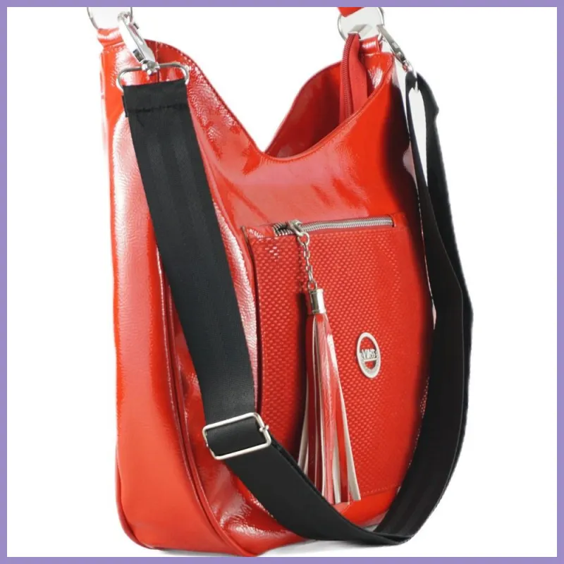 VIA55 női válltáska díszes zsebbel, rostbőr, piros