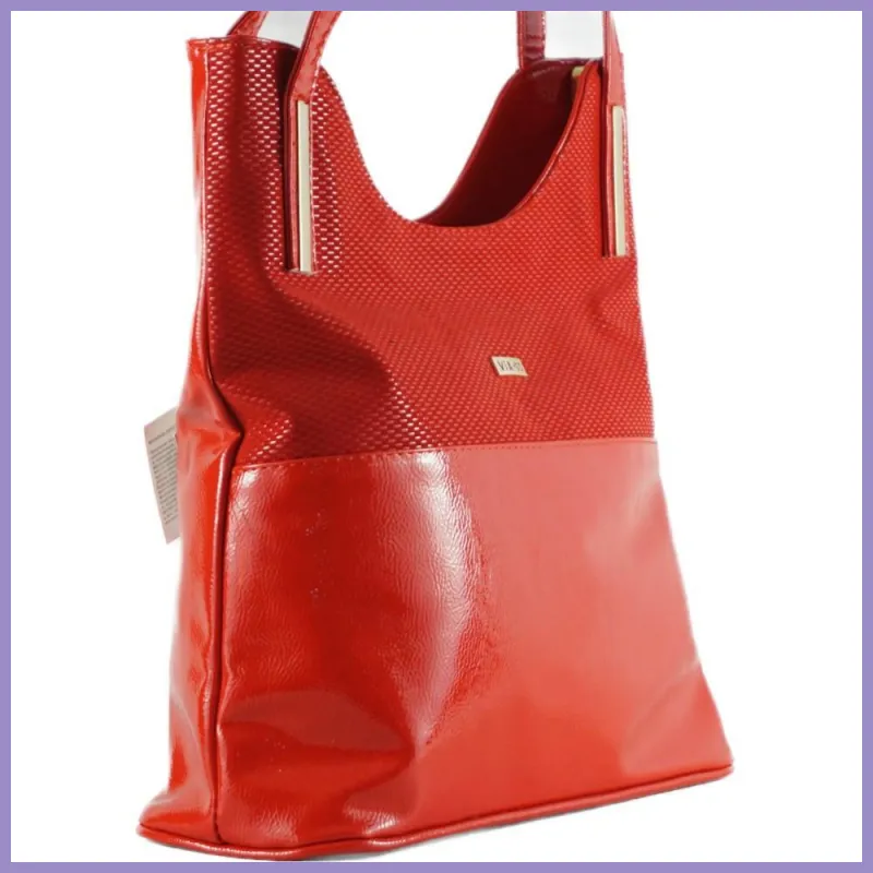 VIA55 női válltáska fém díszítéssel, rostbőr, piros