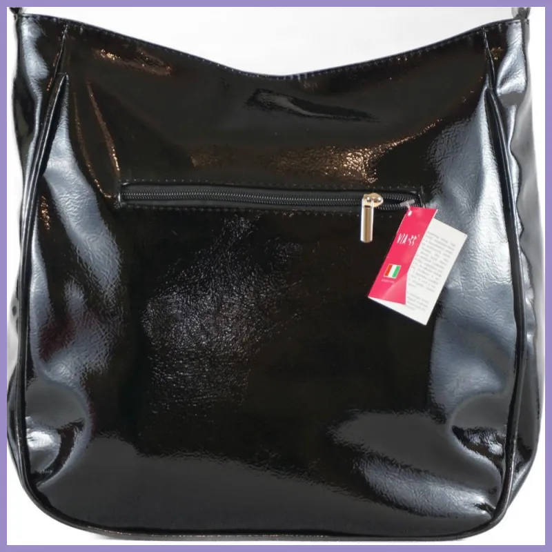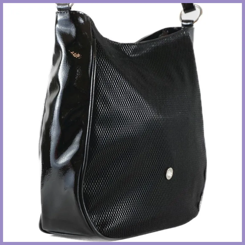 VIA55 női válltáska karikás füllel, rostbőr, fekete rizsminta