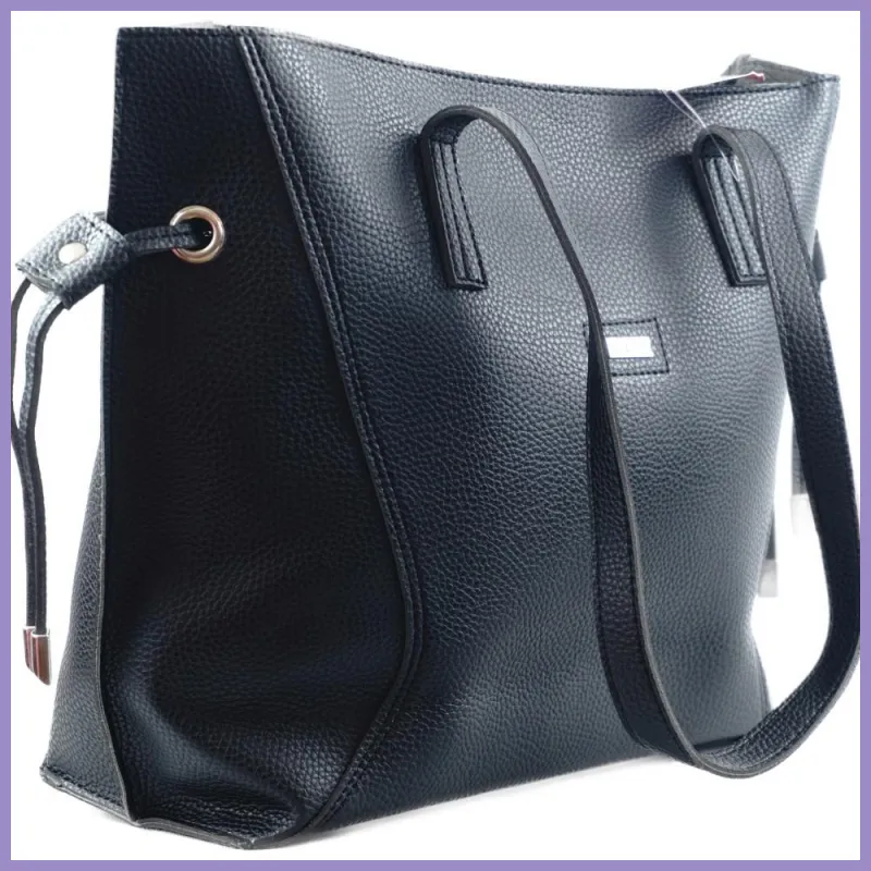 VIA55 női válltáska oldalt összehúzható, rostbőr, fekete