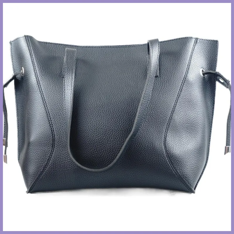 VIA55 női válltáska oldalt összehúzható, rostbőr, fekete színben. Tetején cipzárral nyílik. Belül egyterű, egy függesztett cipzáras zsebbel. Méretei: 36×30×12 cm.