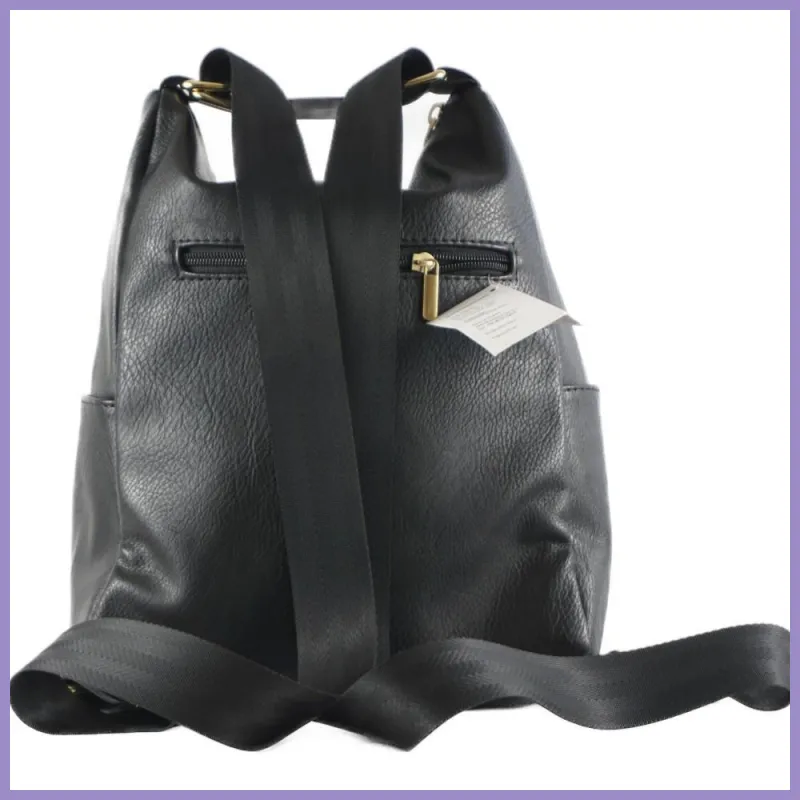 VIA55 válltáskaként is hordható hátitáska, rostbőrből. Elöl 2, hátul 1 cipzáras zseb, felül is cipzárral nyílik. Belül egyterű, 1 cipzáras és 1 benyúlós zseb. Méretei: 27×31×13 cm.